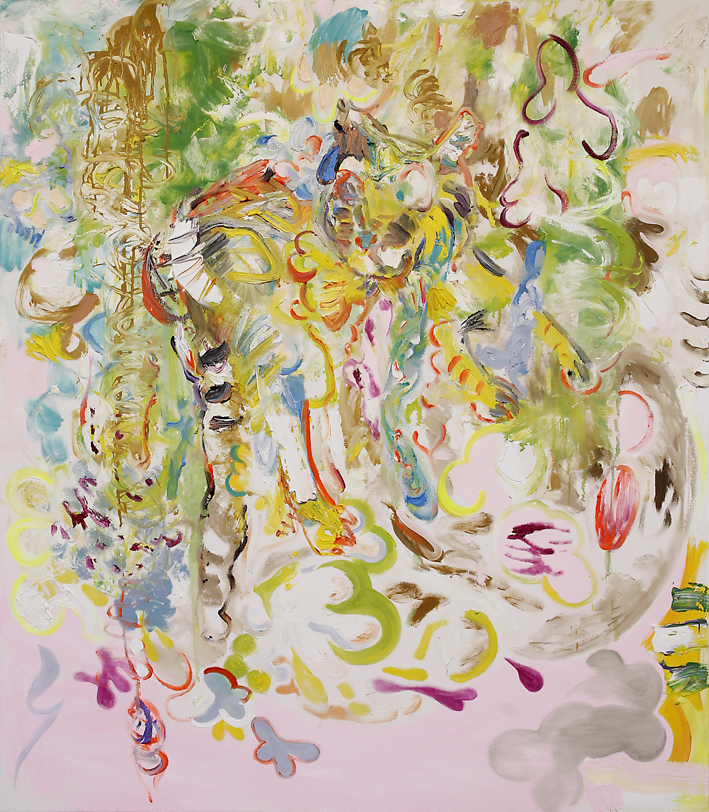 Cat in the garden, Oil on fabric, 150 x 130 cm, 2024